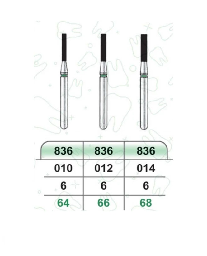 فرزهای الماسی توربین، با توجه به اهداف دندانپزشک، از درجات زبری خیلی نرم (۳۸ تا ۴۴ میکرومتر) تا بسیار زبر (۱۲۵ تا ۱۵۰ میکرومتر) قابل استفاده هستند و به خاطر عمر طولانی و کارایی مناسبشان، در اندازه و شکل‌های بسیار متنوع مورد استفاده دندانپزشکان قرار گرفته‌اند.
